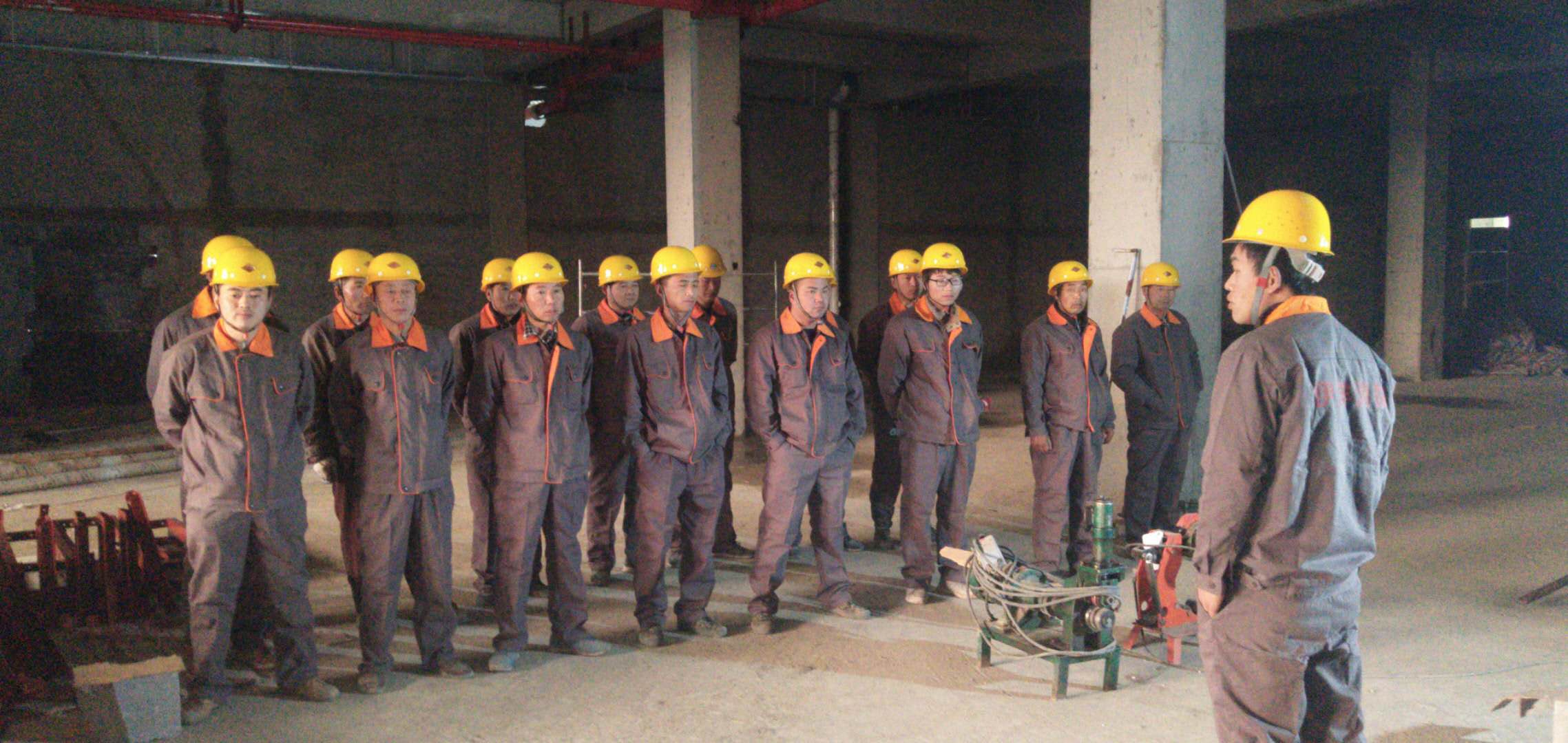 圖為項目班組負責人對施工人員進行安全教育